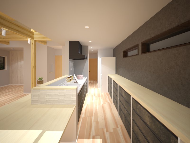 その上につくカウンターは、インテリア性も高めています。
