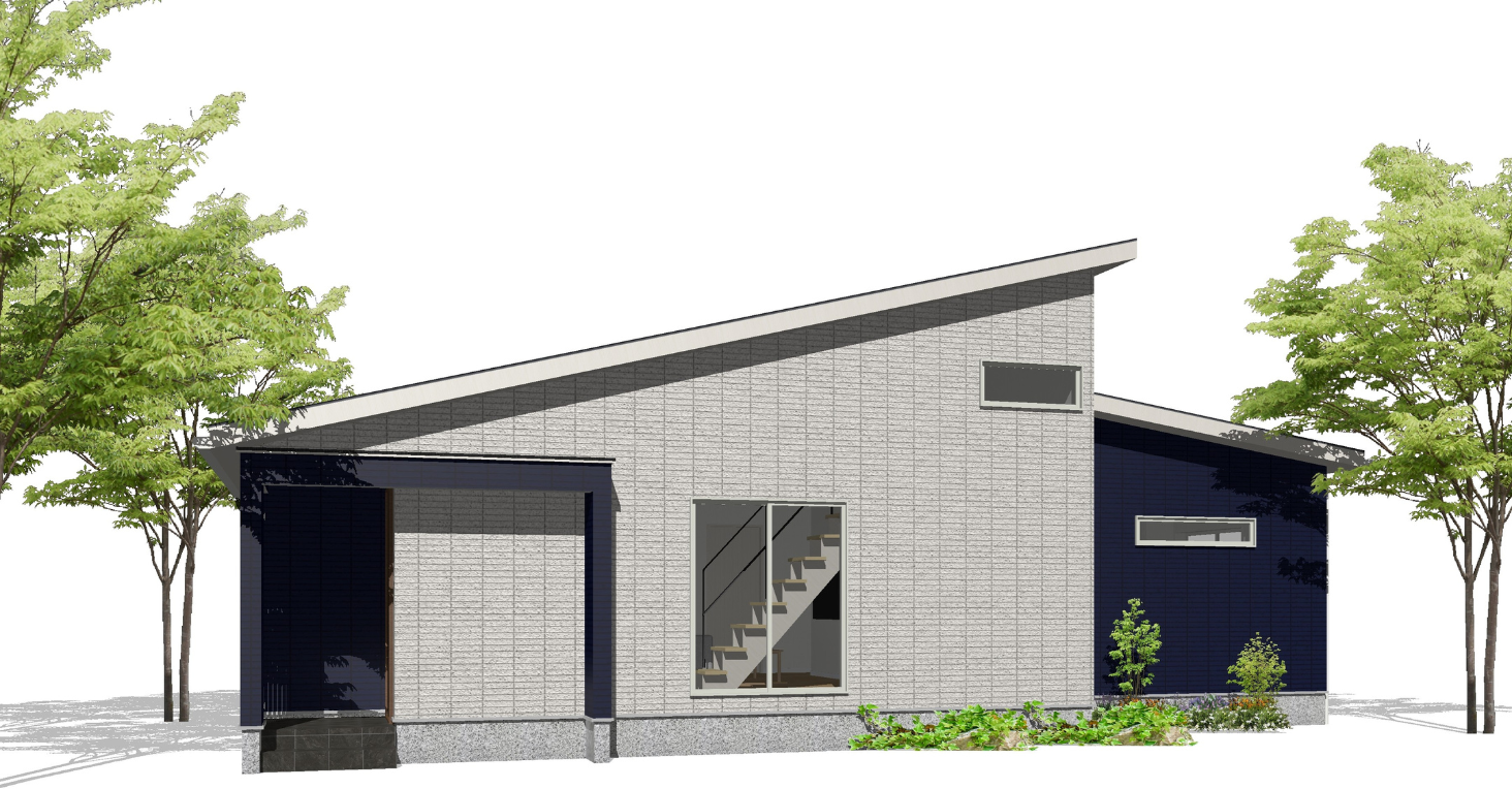 屋根のライン・外壁の貼り分け・窓の位置はどれも主張しすぎず、周囲に溶け込むような落ち着きある「長く好きでいられる」外観。