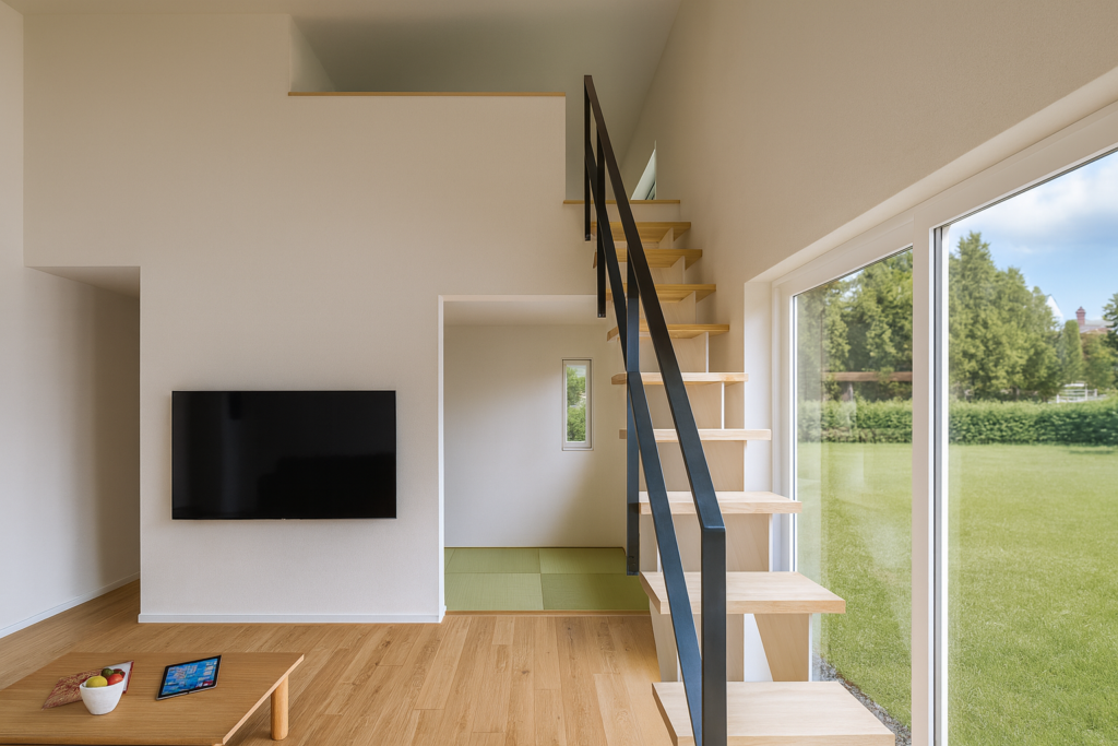 1階に収納スペースが少ない時、あると便利な階段で上がる1.4mのロフト(3帖)。