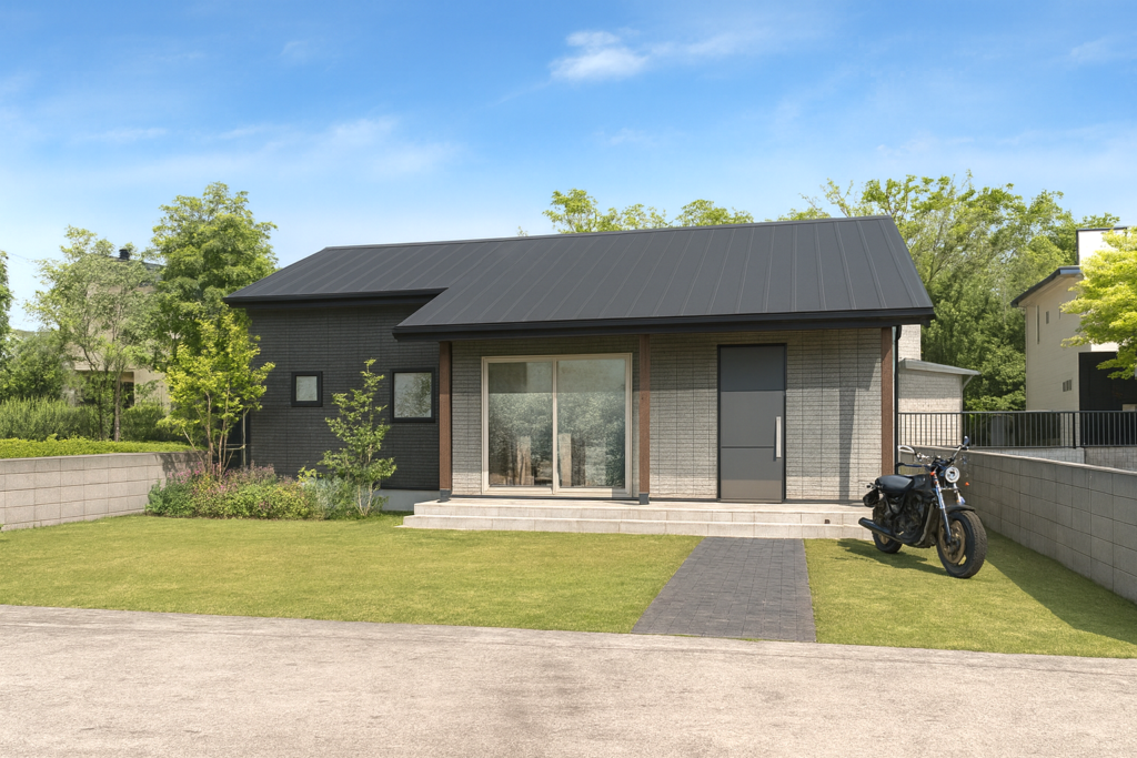 ダークグレーとライトグレーでシックに仕上がった外観。