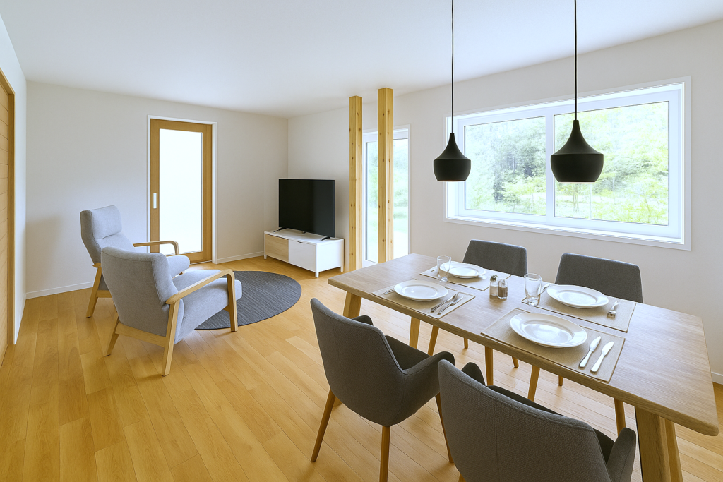 アクセントクロスは入れず、床材や建具の木色を統一することで、視覚的な一体感を演出しています。
