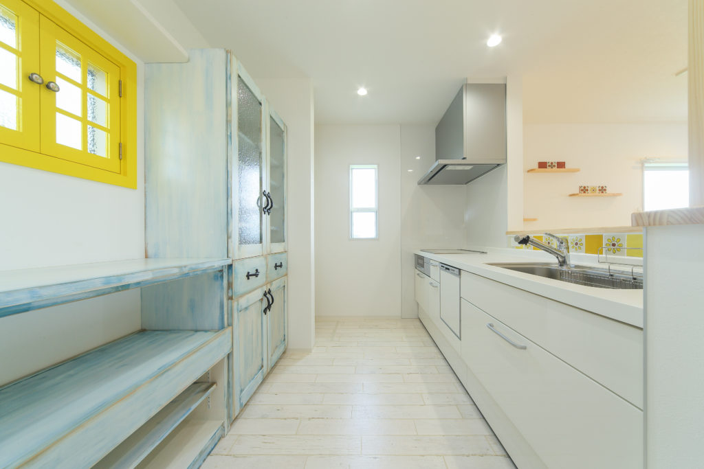 アンティーク塗装した造作カップボードはとっても気に入っています。