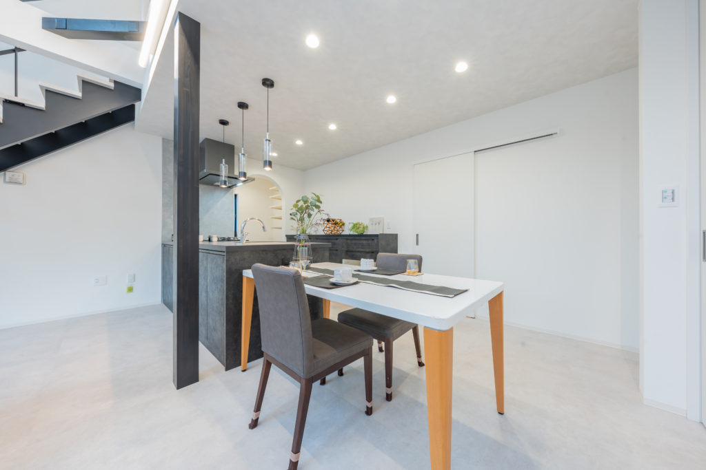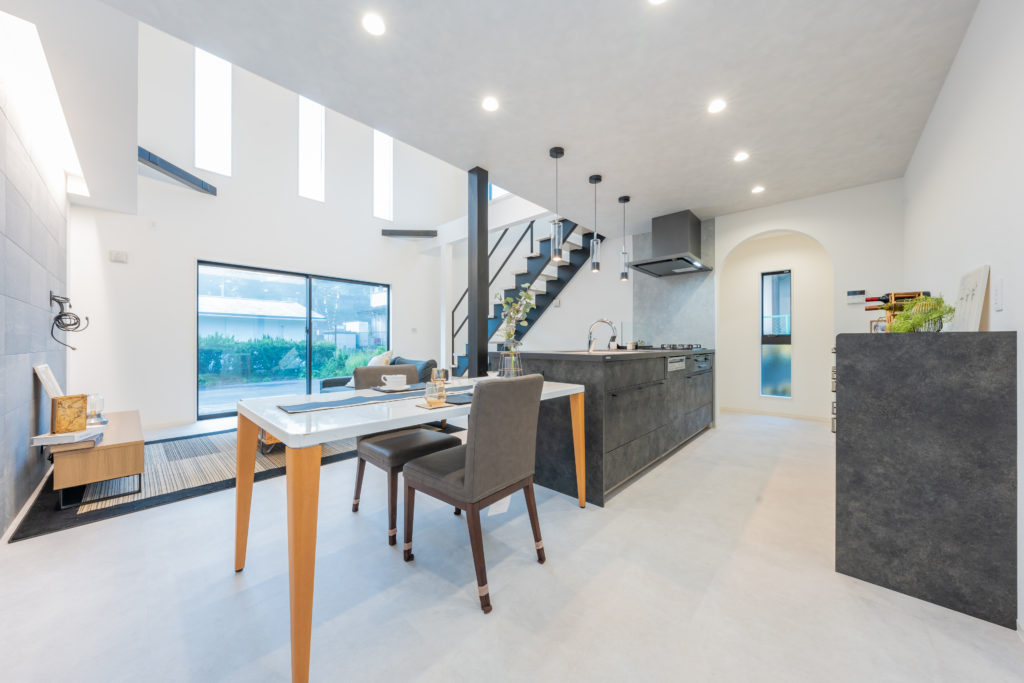 この住まいは、家全体に自然光が広がるよう吹抜けと大開口を中心に設計し、どこにいても明るさと家族のつながりを感じられる空間に仕上げています。